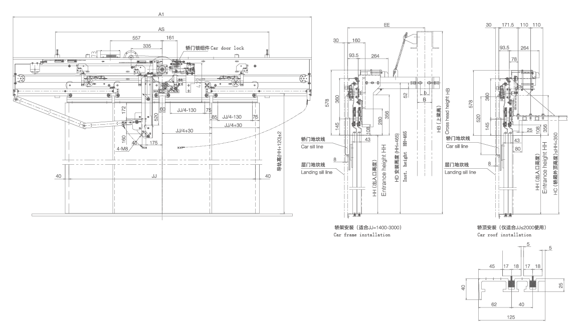 1、采用VVVF變頻控制技術(shù) 2、采用一級減速、同步帶傳動,運行平穩(wěn)可靠 3、采用異步門刀,選配轎門鎖;轎架、轎頂安裝方式 4、門板重量≤320kg (轎門廳門總重量);電壓:200-250 V,50/60 Hz
